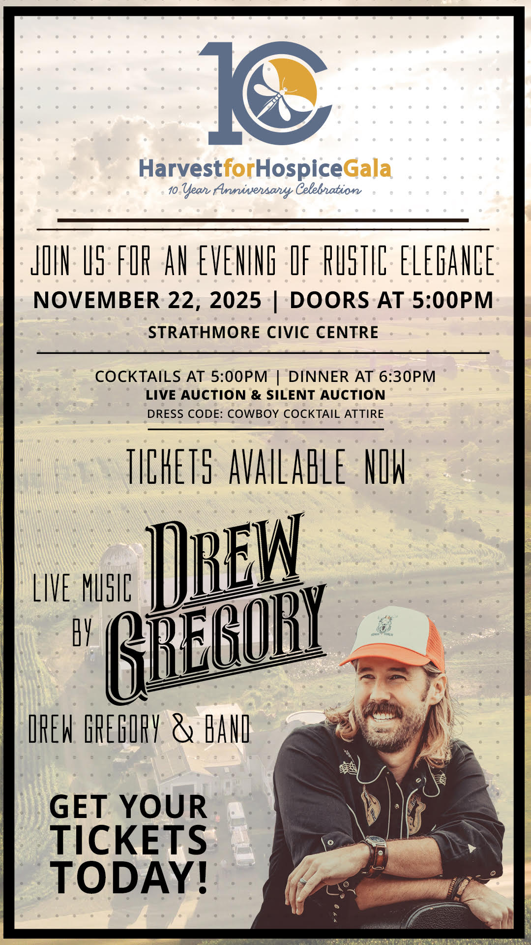 Join us for an evening of rustic elegance as we celebrate 10 years of expanding palliative and hospice services in Wheatland County.