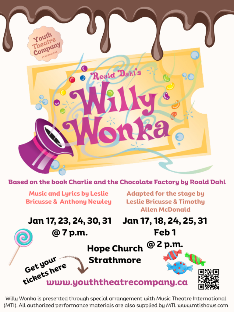 Willy Wonka the Musical follows young Charlie Bucket, a kind-hearted boy who wins a golden ticket to tour the magical chocolate factory of the eccentric Willy Wonka. Alongside four other children, Charlie encounters wild inventions, Oompa-Loompas, and sweet surprises. While the others fall to their own bad behavior, Charlie's honesty wins him the ultimate prize — the chance to take over the factory. The musical celebrates imagination, kindness, and big dreams.