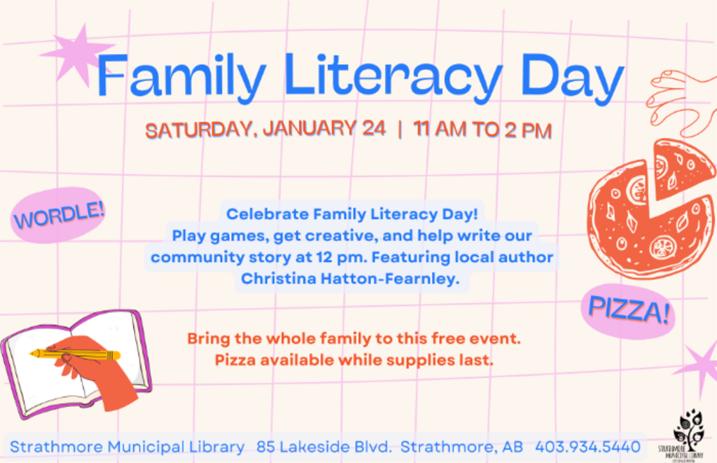 Celebrate the importance of reading and learning together as a family with fun activities featuring local author, Christina Hatton-Fearnley. Help us write our community story at 12 pm. Pizza will be provided. Fun for the whole family!