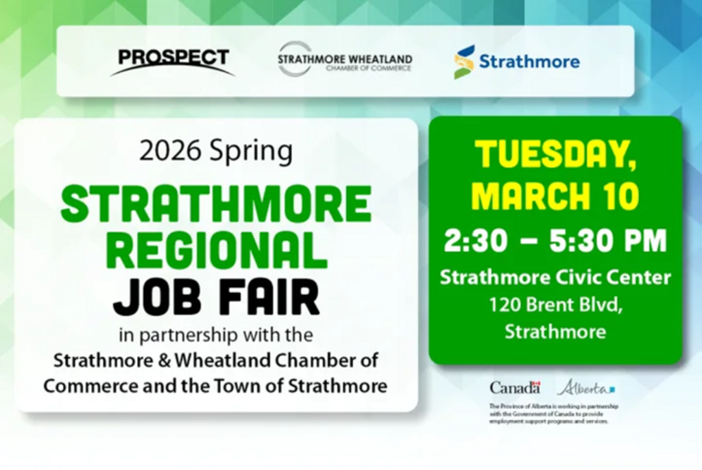 Strathmore JOB FAIR! Come meet multiple hiring employers! Employers, to register for a table at no cost, please use the link: https://www.prospectnow.ca/event-instance/2026-spring-strathmore-regional-job-fair/