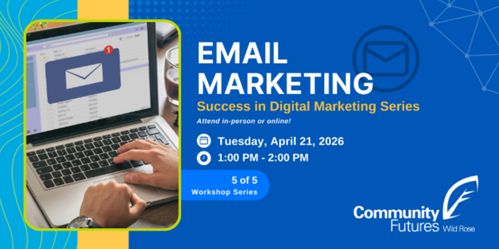 Session 5 of 5 – Success in Digital Marketing Series Attend in-person at Community Futures Wild Rose or join us virtually