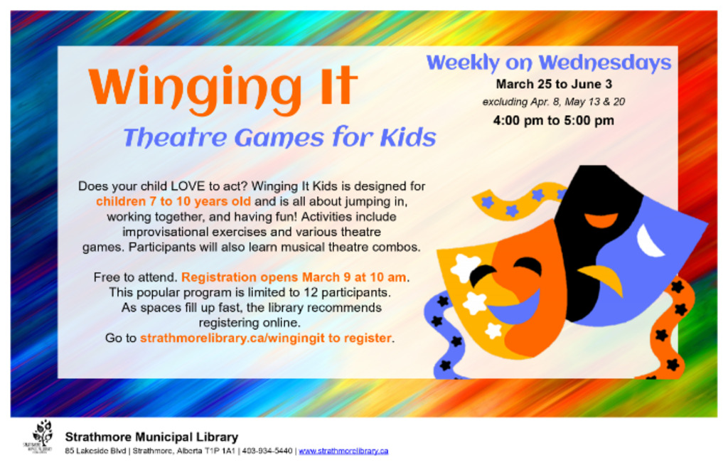 Registration is required and opens March 9 at 10 am. Register online at www.strathmorelibrary.ca/wingingit.