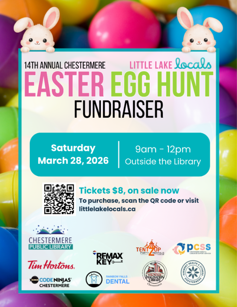 The 14th Annual Chestermere Easter Egg Hunt, now hosted by Little Lake Locals, continues a beloved community tradition. For 13 years, the City of Chestermere hosted this event as a United Way fundraiser; now Little Lake Locals is excited to carry the fun forward for local families. A portion of the proceeds will be donated to the Imagination Library of Chestermere, helping children in our community receive free books and inspiring a love of reading from the very start.